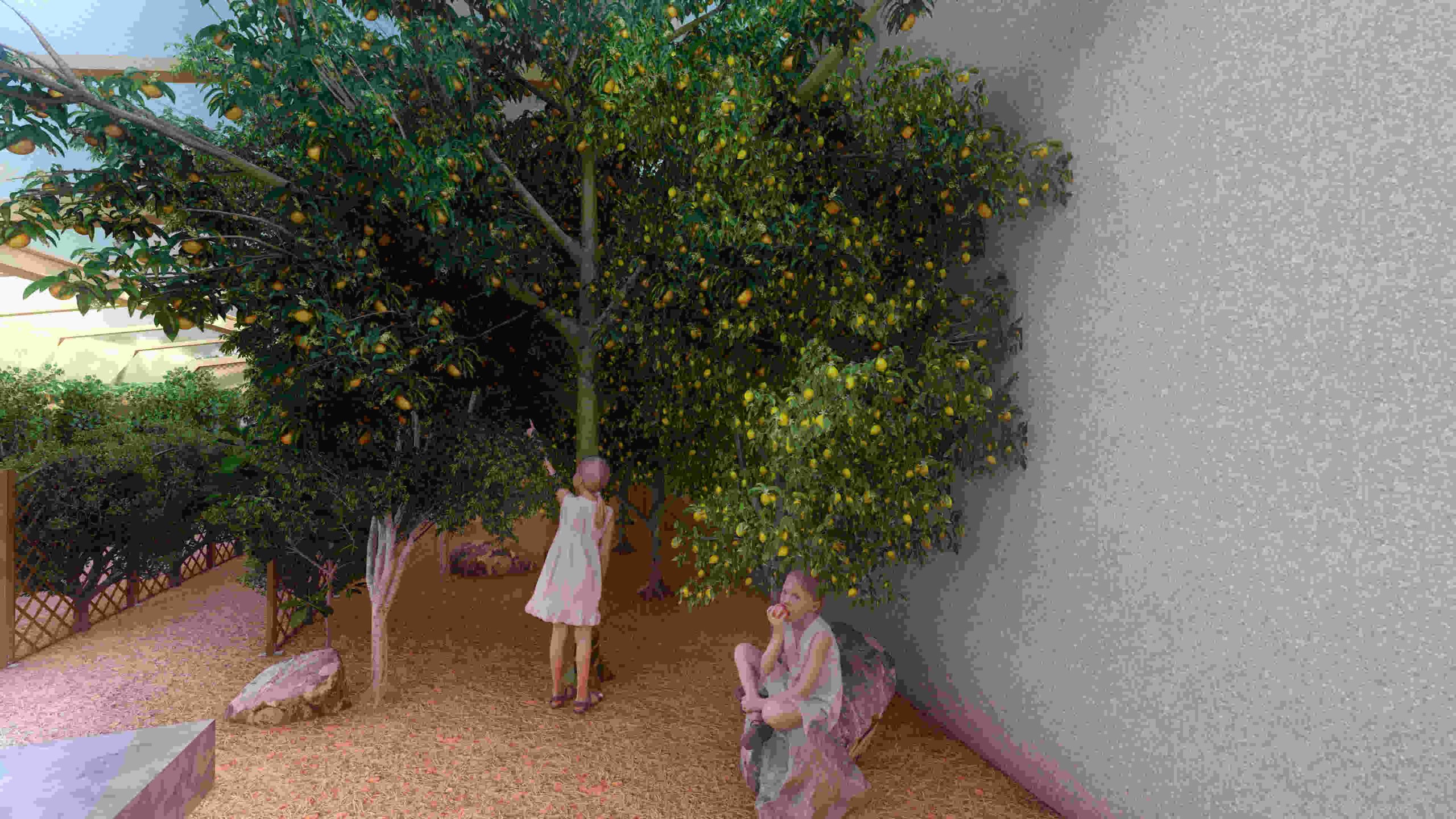 We will grow the ‘Daisy” mandarin on the upper tier of the west planting slope next to the ‘Honey’, which has similar cultural requirements, and so its fragrance can be enjoyed in the seating area.