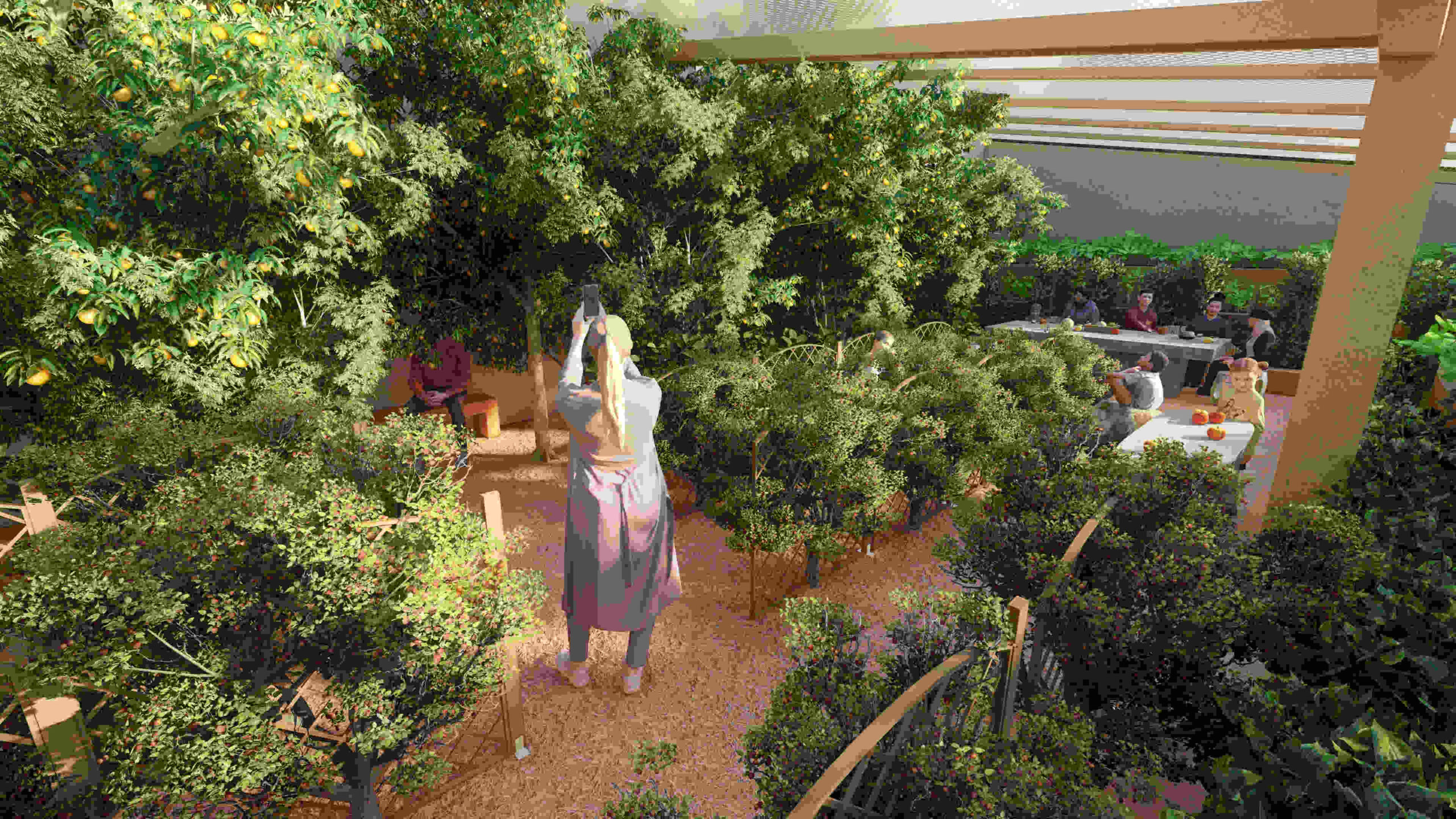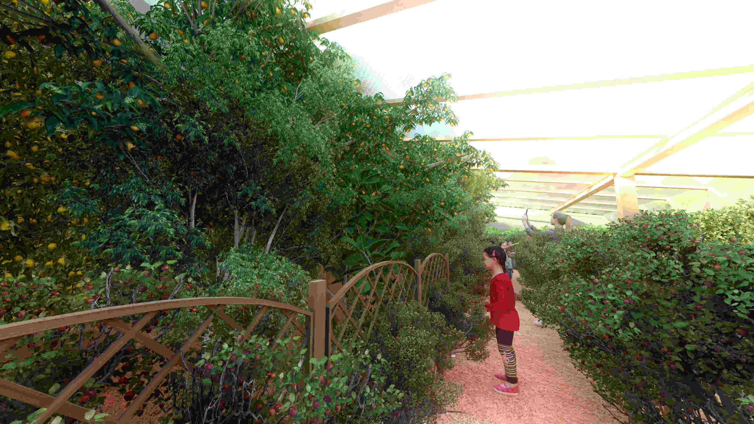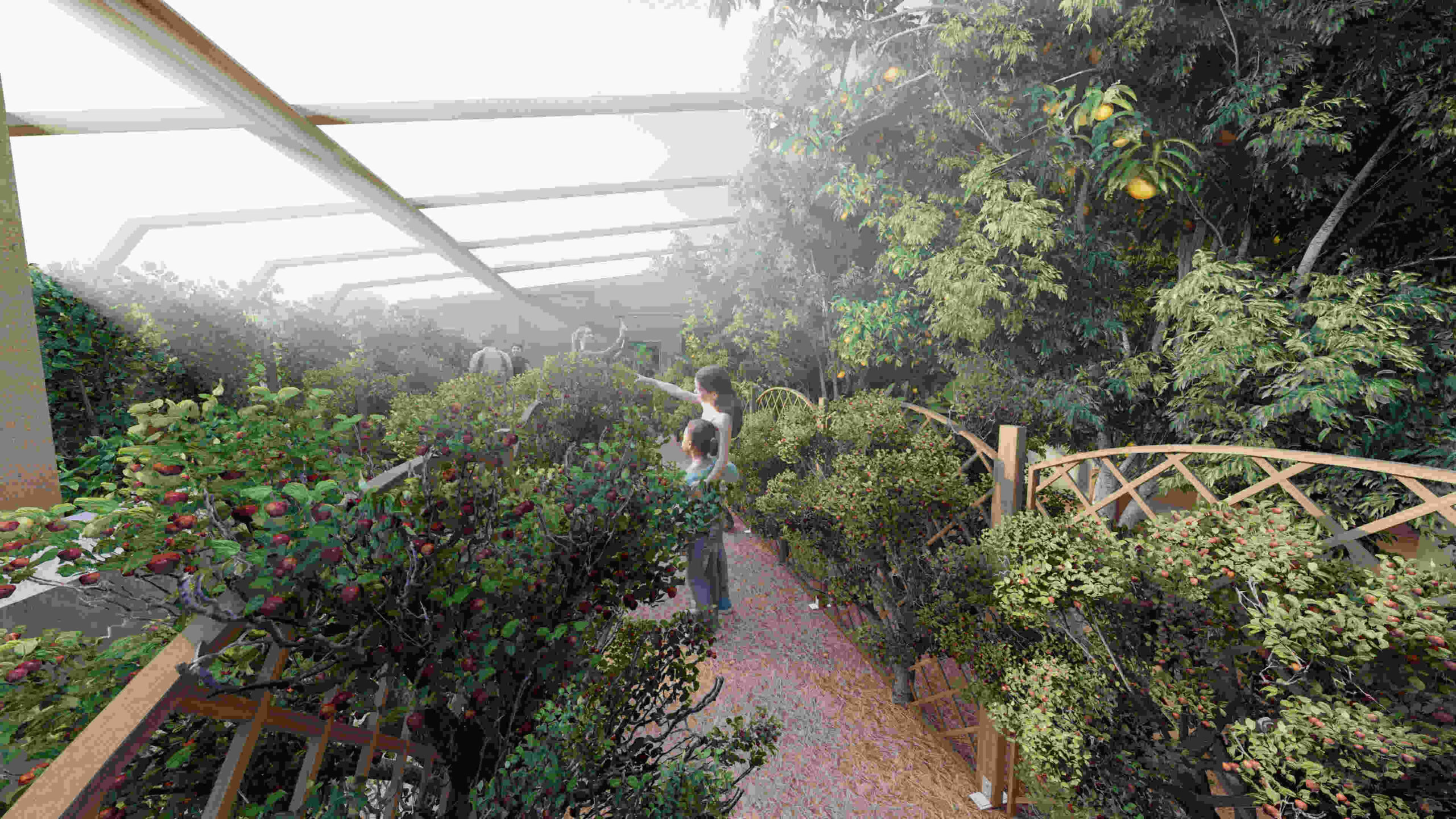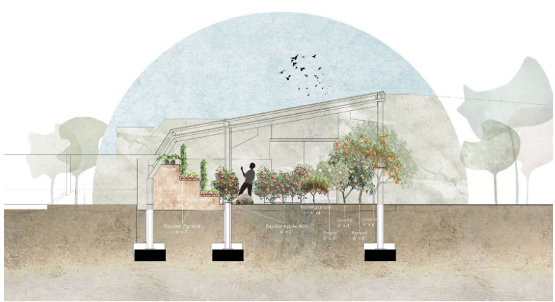 We will test, in the Tropical Atrium and our Aquapini/Walipinis, various fruit trees and their performance in a sheltered environment as opposed to outdoor growing. One of our concerns, as proven in BioSphere 2 (see this article: “The Role of Wind in a Tree’s Life”), is the structural integrity of the trees is weakened with the absence of wind. We will explore using the HVAC airflow, cross ventilation from west to east, and (in the case of the Tropical Atrium) clerestory ventilation from the south as a solution. This, however, is not comparable to outdoor growing where trees are stressed by the wind and ultimately become stronger and develop a more robust root system. So we will also focus on smaller to mid-sized trees and provide adequate support as needed to prevent them from toppling. We may also simply remove and plant trees with an increased frequency if the indoor growing results in a lesser lifespan. We will reevaluate our plantings over time and update this section with necessary recommendations once we compile our findings.