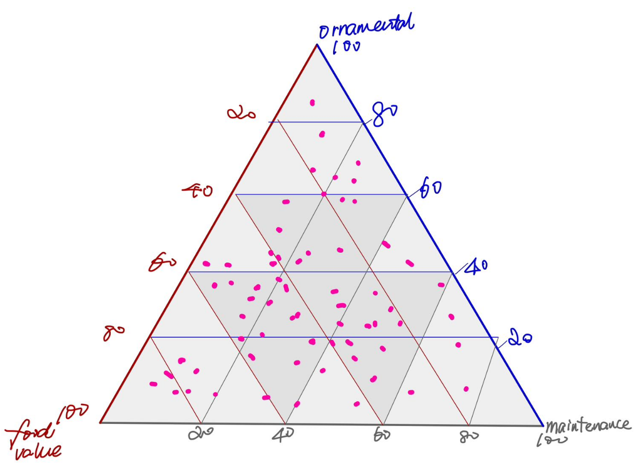 After ranking, consider visualizing these rankings using a ternary plot to observe the distribution across these categories. This may contribute to selecting plants that best meet specific needs when environment changes.
