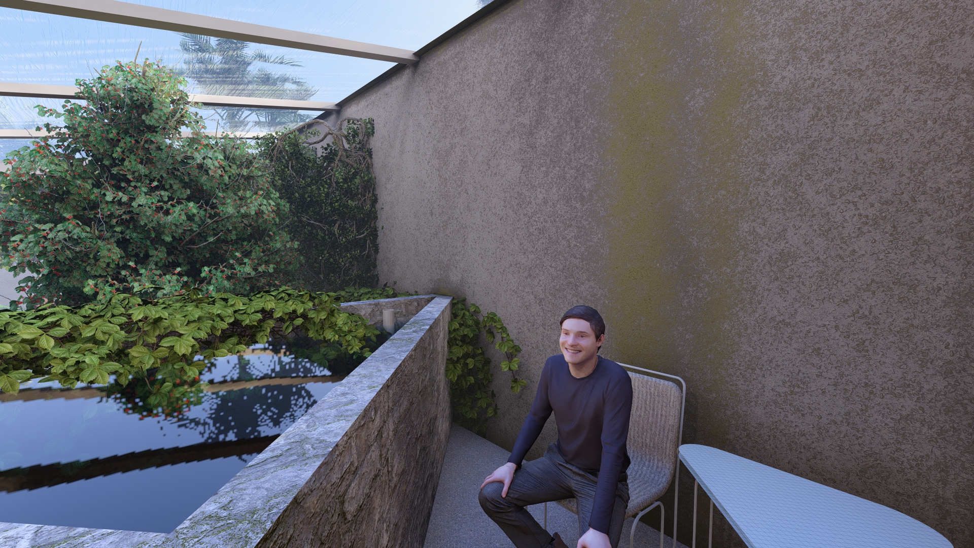 The Averrhoa tree will be placed against the north wall of the Aquapini to avoid casting shade on other parts of the house.