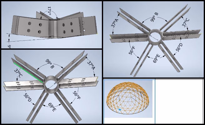 Manjiri Patil (Mechanical Design Engineer) continued working on the designs for the Duplicable City Center DIY-replicable hub connector. She worked on updating the CAD files for the Dome structure, ensuring design accuracy and alignment with project specifications. In parallel, she is incorporating feedback provided by Jae on the manufacturing process documentation to enhance clarity and completeness. Additionally, Manjiri is actively addressing the backlog from last week to ensure all outstanding tasks are completed in a timely manner. Serving as a key feature of One Community’s open-source model, the Duplicable City Center supports our goals in global-sustainability systems management. View the images below to explore the progress.