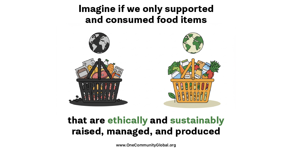The One Community team consists of vegans, vegetarians, and omnivores. In accordance with our philosophy for The Highest Good of All we are maintaining a non-idealogical approach to food choices. That said, also in accordance with this philosophy, we will only support and consume food items that are ethically and sustainably raised, managed, and produced. The consensus process will be used to decide the evolution of the One Community food plan.