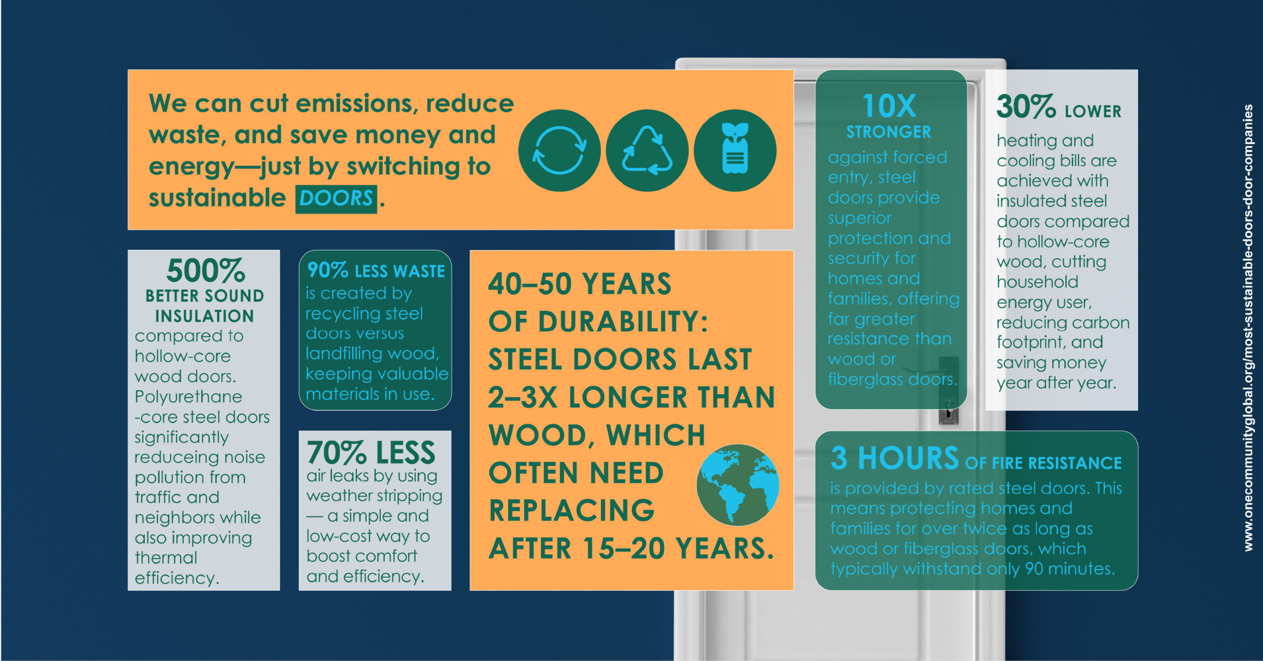 Using the most sustainable doors and door companies to minimize energy use for building heating and cooling is a major component of One Community’s open source strategy for building a global collaboration of self-sufficient and self-sustainable teacher/demonstration communities, villages, and cities for The Highest Good of All. Just by using proper door insulation, especially with the newer technologies, energy efficiency can be improved significantly. With this in mind, we have researched the best energy efficient doors as part of our open source contribution to comprehensive sustainable living. Below you will find an overview of the best doors. It contains the following sections: